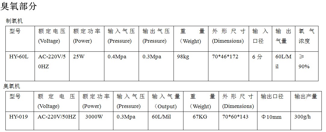 臭氧發(fā)生器選型: 1.按高壓電頻率劃分,有工頻(50-60Hz)、中頻(400-1000Hz)和高頻(>1000Hz)三種。工頻發(fā)生器由于體積大、功耗高等缺點(diǎn),目前已基本退出市場(chǎng)。中、高頻具有體積小、功耗低、臭氧產(chǎn)量大等優(yōu)點(diǎn),是現(xiàn)在最常用的產(chǎn)品。 2.按使用的氣體原料劃分,有氧氣型和空氣型兩種。氧氣型通常是由氧氣瓶或制氧機(jī)供應(yīng)氧氣。空氣型通常是使用空氣(如壓縮空氣)作為原料。由于臭氧是靠氧氣來產(chǎn)生的,而空氣中氧氣的含量只有21%,所以空氣型發(fā)生器產(chǎn)生的臭氧濃度比氧氣型稍低。而瓶裝或制氧機(jī)的氧氣純度都在90%以上,所以氧氣型發(fā)生器的臭氧濃度較高。在環(huán)境消毒時(shí),通常使用空氣型發(fā)生器。在水處理時(shí),應(yīng)優(yōu)先考慮氧氣型發(fā)生器。但如果消毒飲用水時(shí),發(fā)生器需要配合舊式臭氧混合塔使用,則只能選用空氣型。 3.按冷卻方式劃分,有水冷型臭氧發(fā)生器和風(fēng)冷型臭氧發(fā)生器。工作時(shí)會(huì)產(chǎn)生大量的熱能,需要冷卻,否則臭氧會(huì)因高溫而邊產(chǎn)生邊分解。水冷型發(fā)生器冷卻效果好,工作穩(wěn)定,臭氧無衰減,并能長(zhǎng)時(shí)間連續(xù)工作,但結(jié)構(gòu)復(fù)雜,成本高。風(fēng)冷型冷卻效果不夠理想,臭氧衰減明顯。大型臭氧發(fā)生器或重要場(chǎng)所使用的發(fā)生器通常都是水冷式的。風(fēng)冷一般只用于臭氧產(chǎn)量較小的發(fā)生器或?qū)Πl(fā)生器性能要求不嚴(yán)格的場(chǎng)所。在選用時(shí),應(yīng)盡量選用水冷型的。 4、按介電材料劃分,常見的有石英管臭氧發(fā)生器、陶瓷板臭氧發(fā)生器、陶瓷管臭氧發(fā)生器、玻璃管臭氧發(fā)生器和搪瓷管臭氧發(fā)生器等幾種類型。其中石英管由于具有介電常數(shù)高、壁厚均勻、橢圓度好、耐高溫、耐潮濕等特點(diǎn)而最常被一些高性能的臭氧發(fā)生器使用。陶瓷板易脆裂,只適用一些小型發(fā)生器。陶瓷管的壁厚和橢圓度不易控制,容易出現(xiàn)放電不均勻的問題,所以使用的不多。玻璃管和搪瓷管介電常數(shù)低,耐高溫性能差,易炸裂,只有在一些低端發(fā)生器上使用. 5、按臭氧產(chǎn)生部件的結(jié)構(gòu)劃分,有密閉式和開放式兩種。密閉式發(fā)生器的結(jié)構(gòu)特點(diǎn)是密封體本身就是電極,臭氧能夠集中使用,如用于水處理。開放式發(fā)生器的電極是裸露在空氣中的,所產(chǎn)生的臭氧無法集中使用,通常只用于較小空間的空氣凈化或某些小型物品表面消毒。密閉式發(fā)生器可代替開放式發(fā)生器使用。密閉式發(fā)生器的成本遠(yuǎn)高于開放式發(fā)生器。值得注意的是,現(xiàn)在有些人把開放式發(fā)生器硬性封裝起來,冒充密閉式發(fā)生器。這樣做的結(jié)果是由于大量的熱量無法及時(shí)散發(fā),臭氧衰減嚴(yán)重,發(fā)生器也很快燒損。 廣州佳環(huán)臭氧發(fā)生器保養(yǎng): 1、請(qǐng)將本設(shè)備置于干燥通風(fēng)處,防塵網(wǎng)(風(fēng)扇處)一個(gè)月清理一次; 2、本設(shè)備非專業(yè)電工,請(qǐng)勿開箱(內(nèi)有高壓); 3、保養(yǎng)時(shí)請(qǐng)專業(yè)電工,開啟機(jī)箱后蓋; 4、硅膠管三個(gè)月更換一次,效果更佳; 5、檢查機(jī)器內(nèi)部接頭是否松動(dòng)和軟管老化; 6、如有接頭松動(dòng),請(qǐng)用螺絲刀扭緊,軟管老化,請(qǐng)及時(shí)更換; 7、所有購買本公司產(chǎn)品的客戶,均可在本公司以低于市場(chǎng)價(jià)購買配件; 8、設(shè)備維修保養(yǎng)(如需上門維修,需由客戶支付差旅費(fèi)用,公司視路途遠(yuǎn)近,選擇就近經(jīng)銷商上門維修;) 9、設(shè)備維修時(shí),請(qǐng)將保修卡隨機(jī)一起寄回本公司。 廣州佳環(huán)臭氧發(fā)生器基本故障檢測(cè): (一)、機(jī)器不通電:電源插頭是否插好,插座是否有220V 交流電; (二)、臭氧輸出口氣量輸出: 1、如氧氣輸入口有氣量輸入,機(jī)器內(nèi)部線路接頭是否漏氣、脫落、管路是否打折; (三)、無臭氧(有氣) 1、臭氧指示燈不亮,開關(guān)是否打開; 2.如果開關(guān)已打開,還是沒有臭氧,模塊損壞; (四)、臭氧消毒注意事項(xiàng): 1:機(jī)器設(shè)備必須放置在無油污、空氣干凈、干燥的地方工作,以延長(zhǎng)機(jī)器設(shè)備使用壽命。 2:使用時(shí)必須輕拿輕放,不能亂扔亂放。 3:機(jī)器設(shè)備用于水處理,臭氧輸出口必須接上止回閥。,(注意:止回閥分正反,在沒接止回閥前檢查有臭氧輸出,再接上止回閥,如沒臭氧就證明止回閥接方向接反,在這時(shí)倒一頭就可以了);防止回水進(jìn)入機(jī)內(nèi),損壞機(jī)器。 4:禁止將臭氧機(jī)放在消毒區(qū)內(nèi)工作,為了工作的安全,設(shè)備應(yīng)有單獨(dú)工作區(qū),再用硅膠管將臭氧氣體輸送到消毒或化學(xué)反應(yīng)區(qū)。 5:機(jī)器設(shè)備必須天天檢查維護(hù);如發(fā)現(xiàn)異常要立刻關(guān)機(jī),查明原因、處理好后再用。 6:使用前機(jī)器設(shè)備必須良好接地,以防雷電。不用時(shí)最好拔掉電源插頭。 7:根據(jù)工作環(huán)境、使用要求,正確選用臭氧消毒機(jī)。 8:機(jī)器設(shè)備若長(zhǎng)時(shí)間不用必須將機(jī)內(nèi)、機(jī)外殼清理干凈,放置通風(fēng)干燥的地方。防止受潮損壞。 9:為了防止機(j